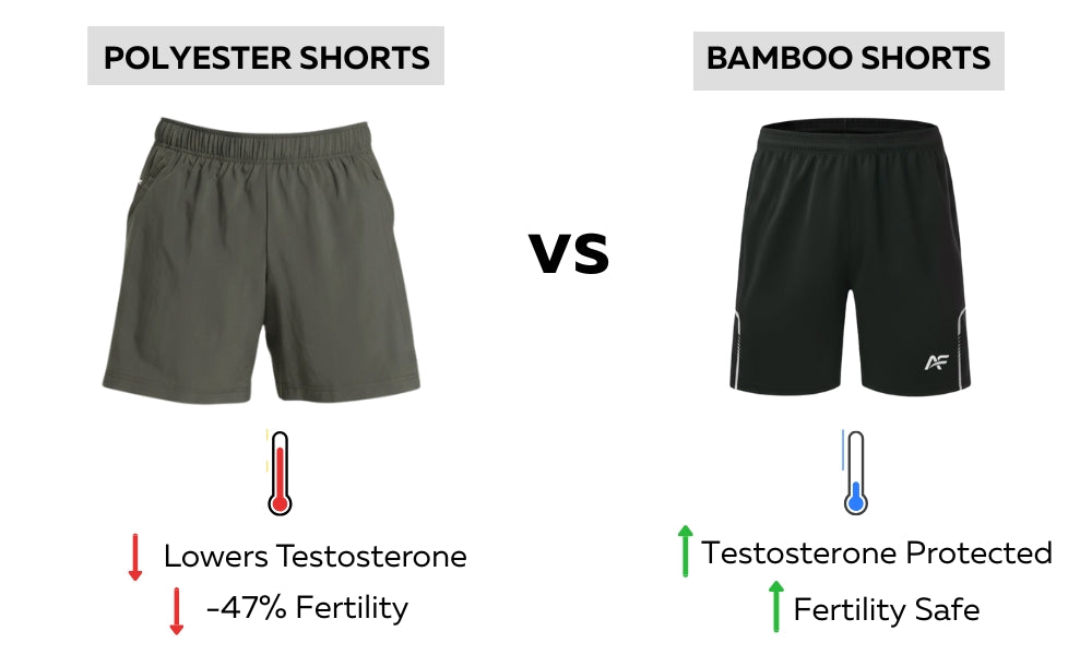 Synthetic fabrics trap heat during workouts. That elevated temperature damages sperm production and suppresses testosterone—both proven in scientific research. The longer you wear polyester, the worse the impact.