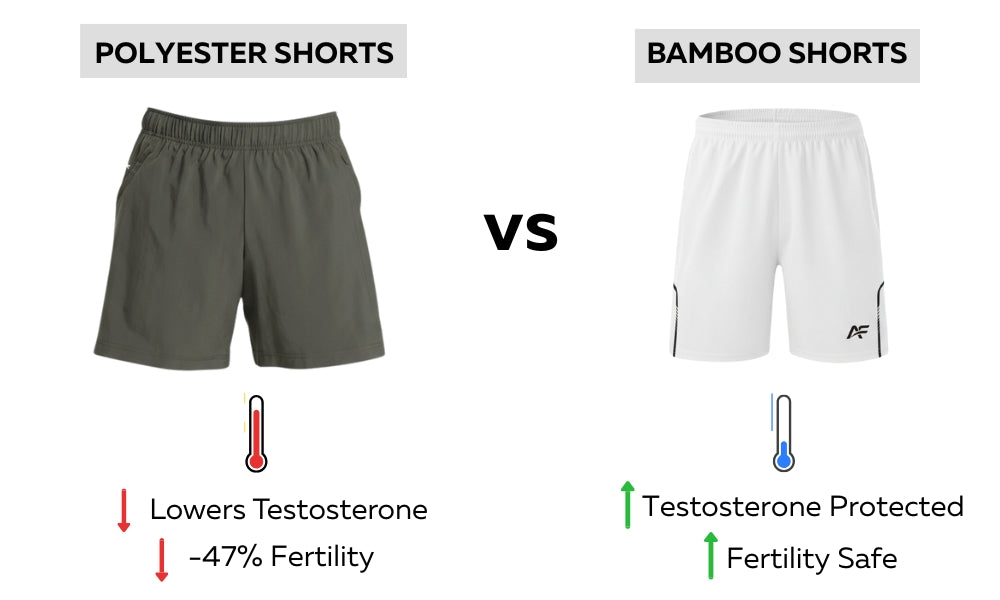 Synthetic fabrics trap heat during workouts. That elevated temperature damages sperm production and suppresses testosterone—both proven in scientific research. The longer you wear polyester, the worse the impact.